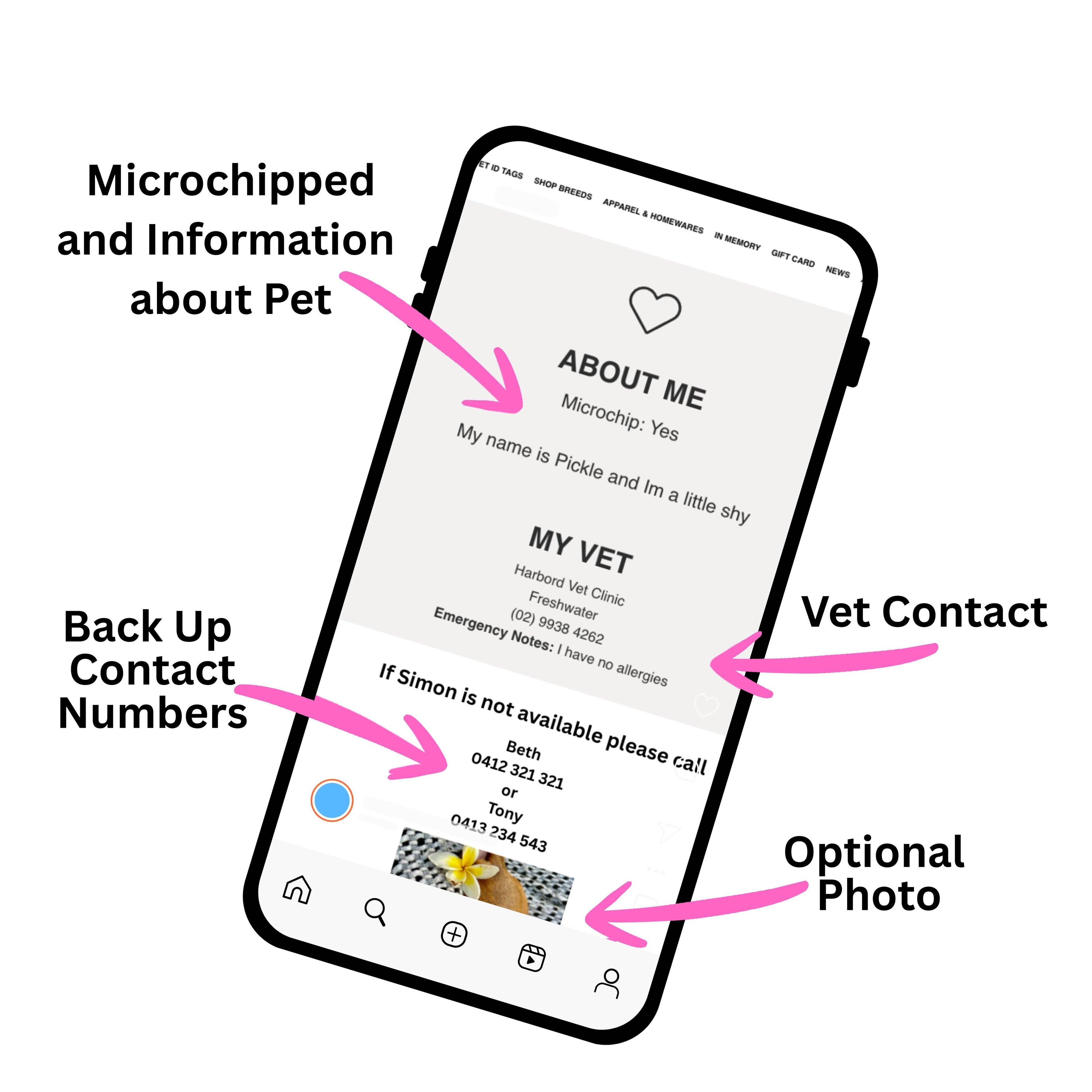 - QR pet ID tags are ideal for dog owners who want flexibility. If your phone number changes or you move, your dog's profile can be updated without replacing the tag. Backup contacts and vet information can be added to your dog's profile, and you can include notes about your dog's medical needs or behaviour.